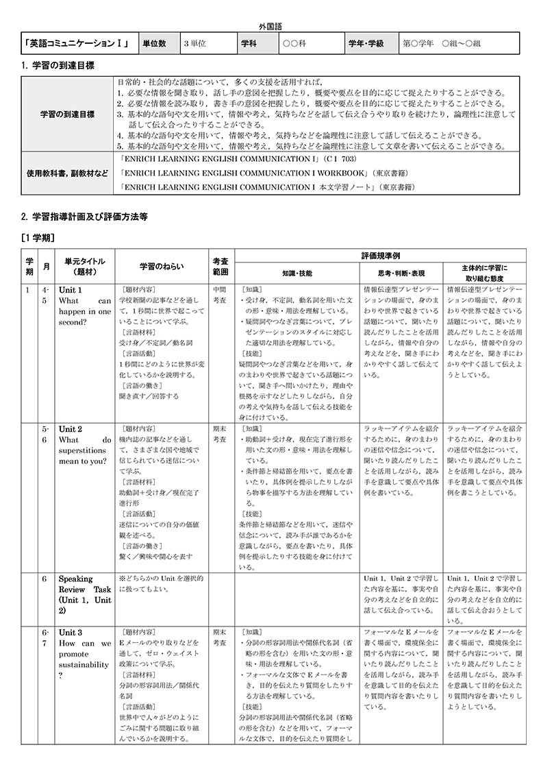 評価規準例ダウンロード