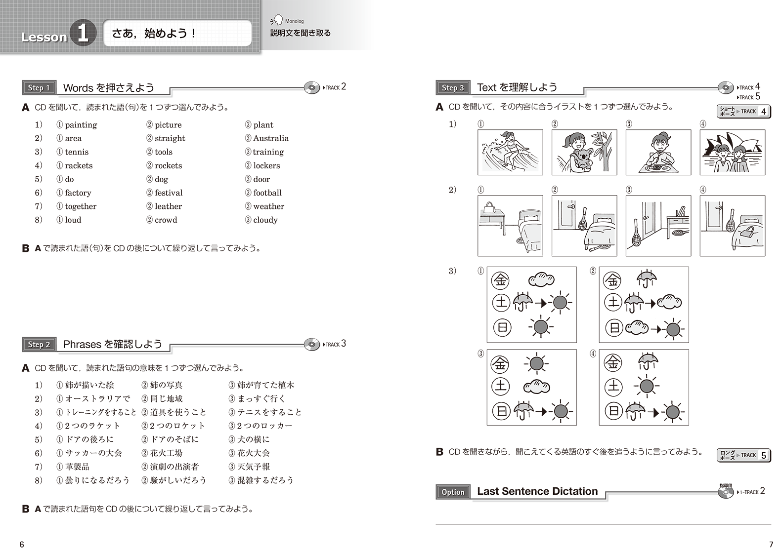 付属品 〔 2書目とも〕解答&聞き取りスクリプト(32頁,バラ対応可)・CD・ディクテーションシート(32頁)