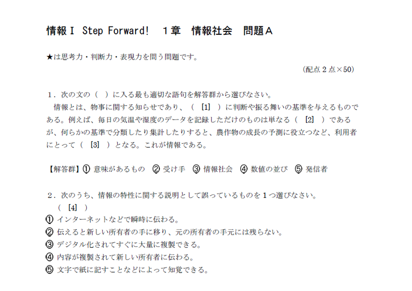 既に実施されている情報科入試分析に基づいた編集