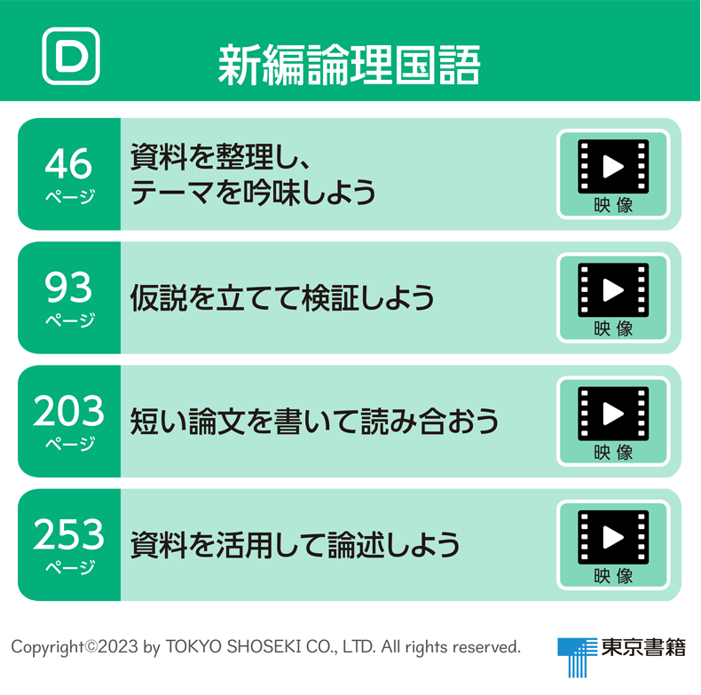 ・言語活動の学習手順を分かりやすく示した映像をご用意しています。