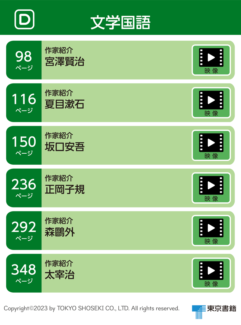 ・手軽に視聴できる,教科書掲載教材の作者紹介の映像をご用意しています。