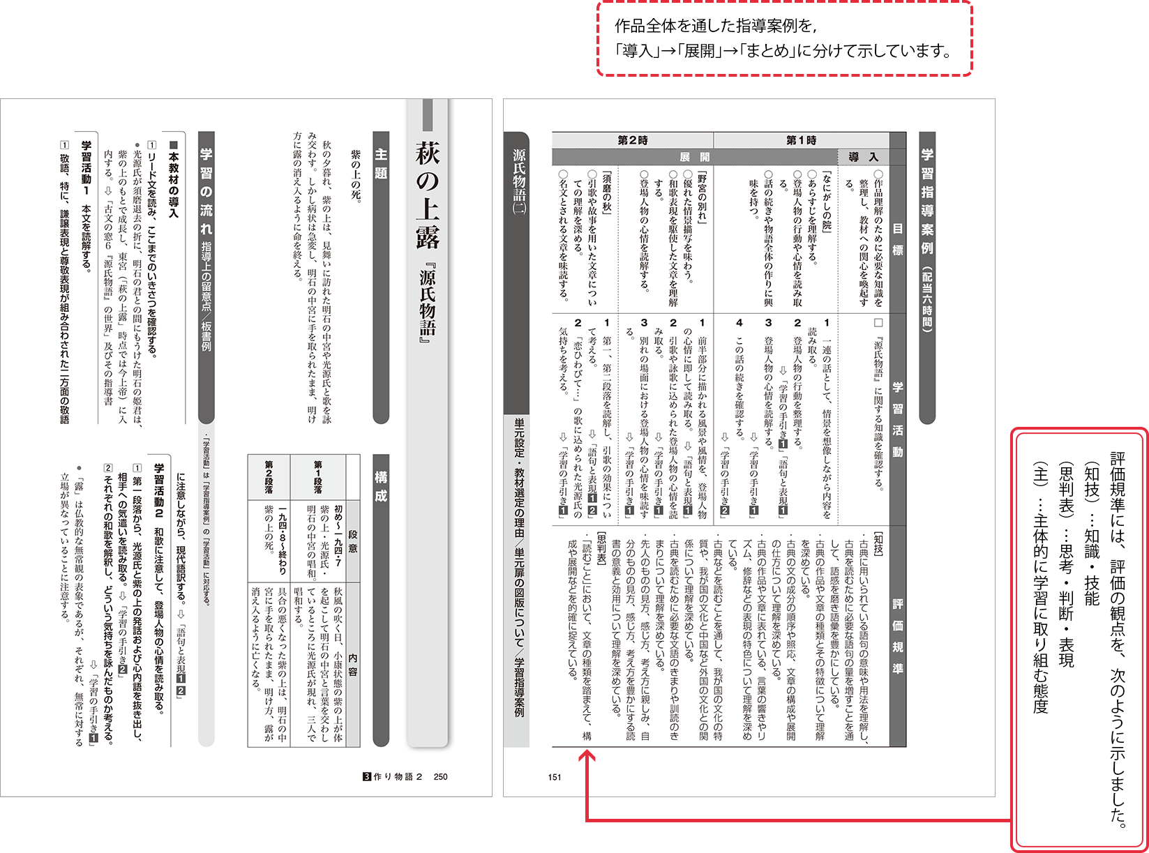 - 〈作品の解説〉書名/成立/作者・編者/内容/文学史的意義/研究/教科書本文/解釈と鑑賞/参考文献