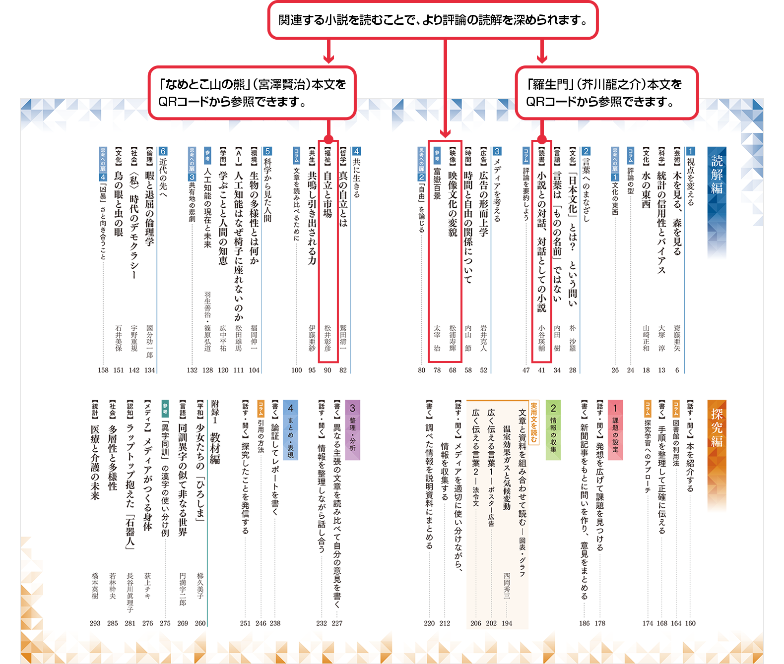 - 「文章を読み比べるために」など、新傾向の入試への対策となる特設ページを用意。