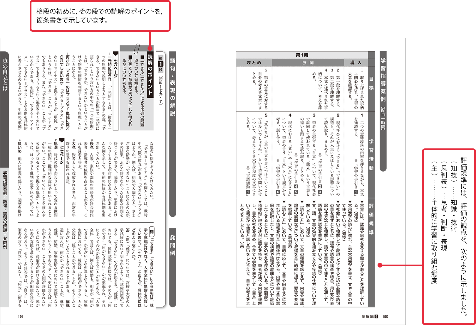 - 準備段階と、本文読解に即した「読解」の2つのステップで構成。