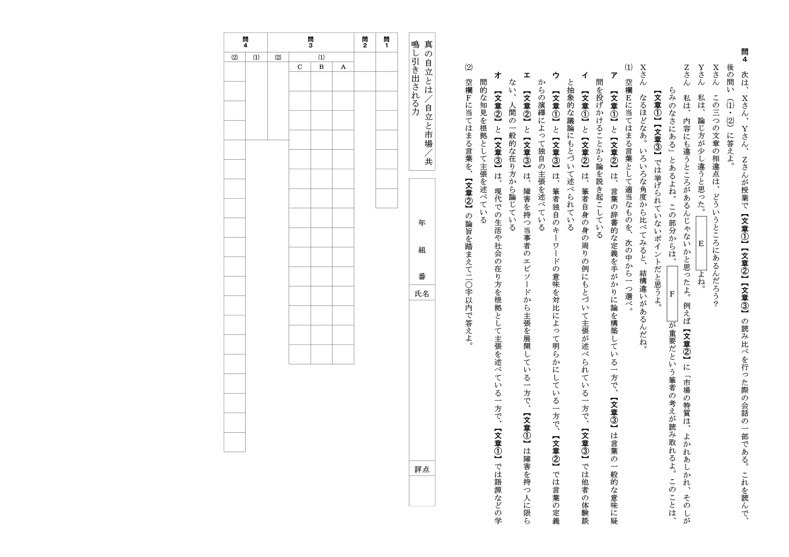 ・複数の文章や図・グラフなどをもとに考える評価問題。