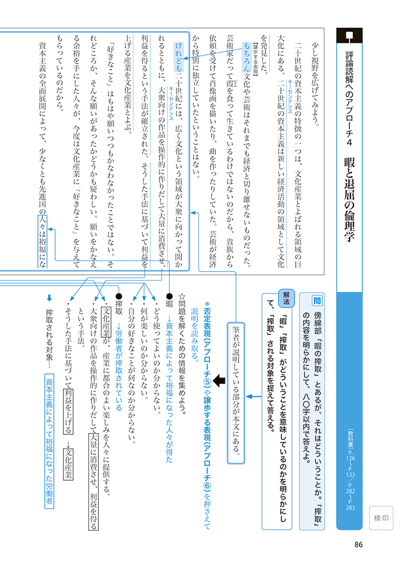 - 「評論読解へのアプローチ」特設ページでは、記述式問題の考え方を図解で解説。