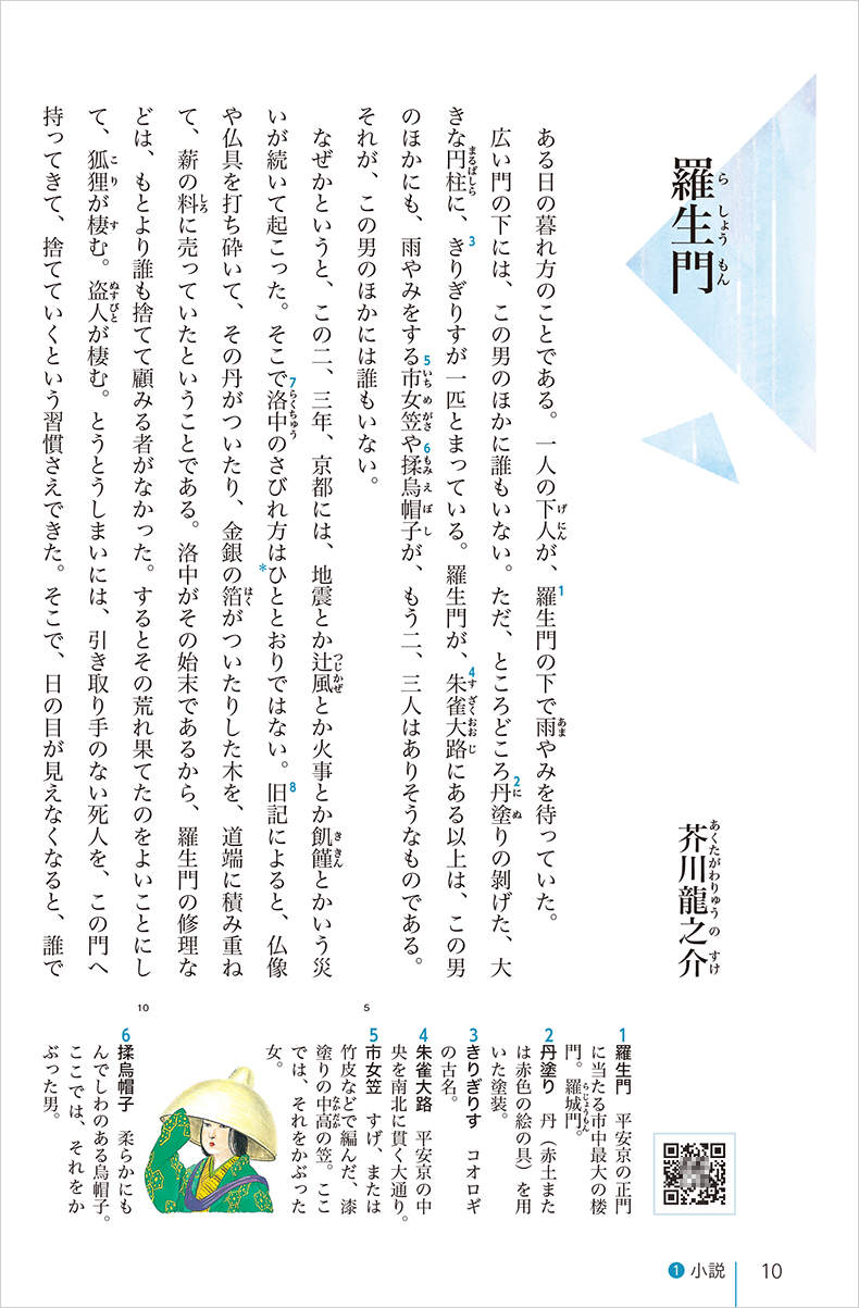・「羅生門」「城の崎にて」「小景異情」「徒然草」「平家物語」「奥の細道」「絶句と律詩」などの教材を収録しています。