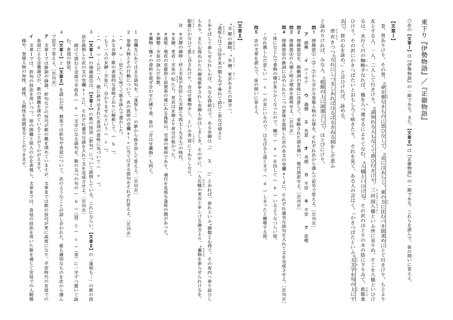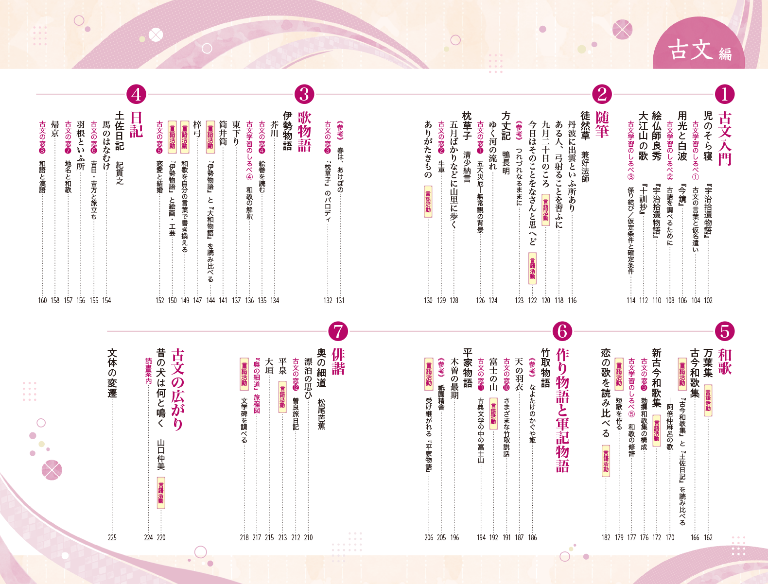 - 〈作品の解説〉書名/成立/作者・編者/内容/文学史的意義/研究/教科書本文/解釈と鑑賞/参考文献