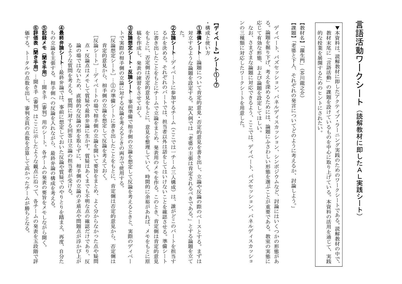 ・言語活動の授業で活用できるワークシートのデータです。※一部教材のみ収録。