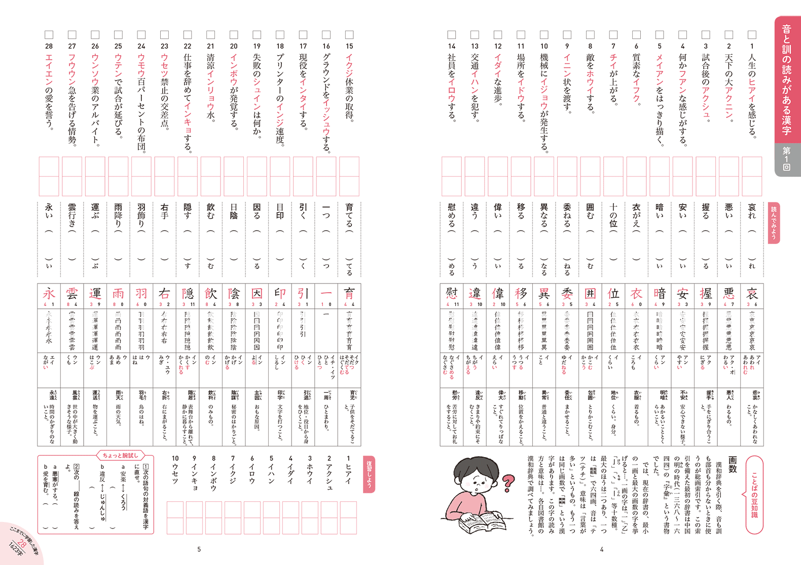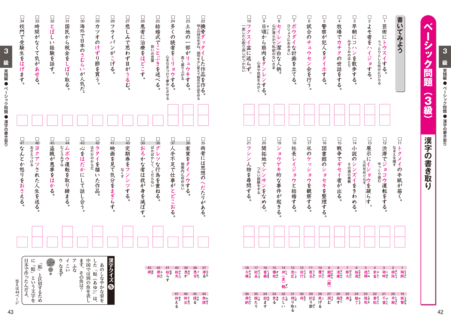 付属品 漢字ハンドブック(96 頁)・漢検模擬テスト(4 級~ 2 級,11 回)・模擬テスト解答編・漢字小テスト(30回,バラ対応可)