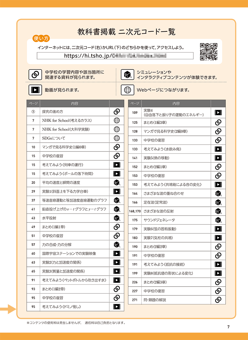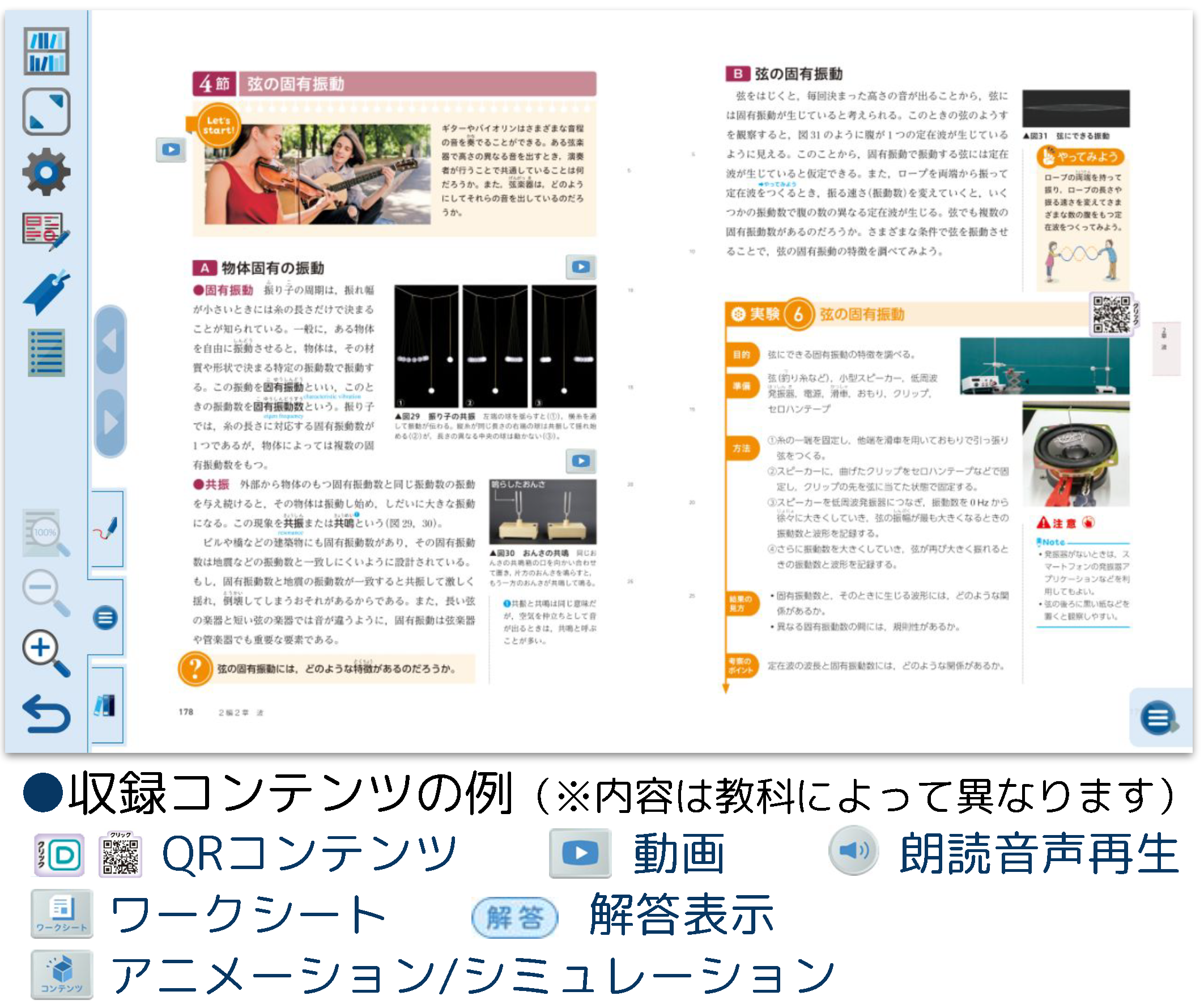 東京書籍の教科書では,学びを深めるための動画やシミュレーション,インタラクティブコンテンツ,Webページなど,教科特性に合わせてさまざまなQRコンテンツをご用意しています。