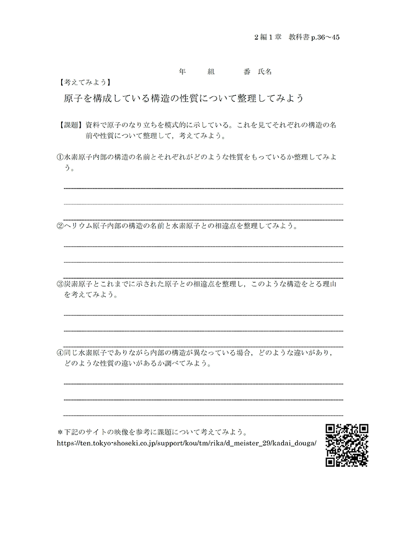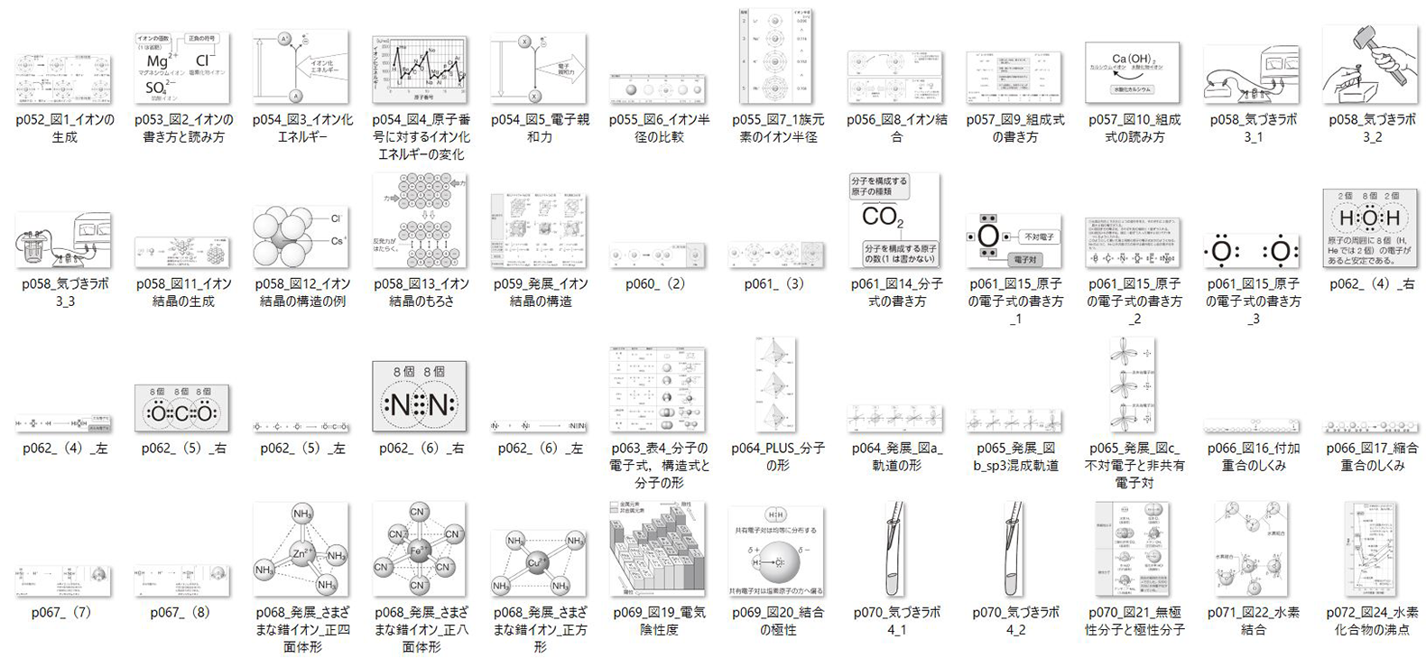 「改訂 化学基礎」では、教科書の裏表紙や目次のほか、教科書の内容に合わせて配置された二次元コードから、QRコンテンツへアクセスいただけます。
