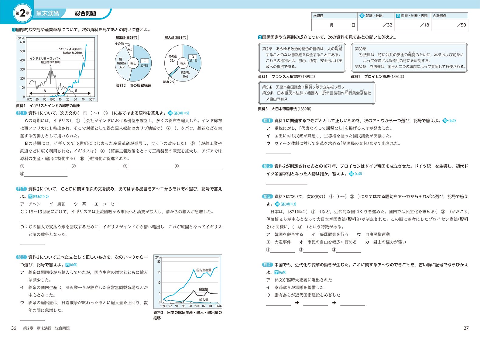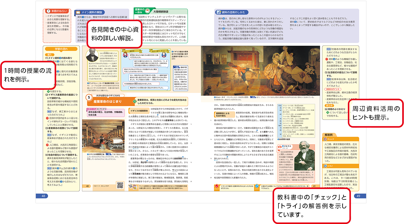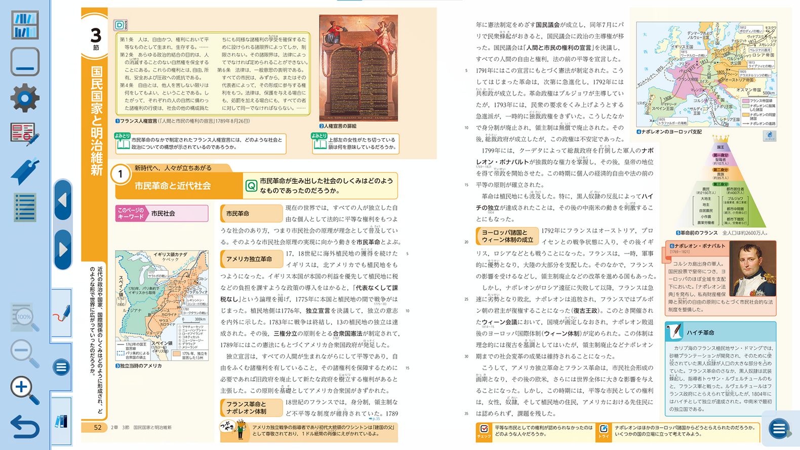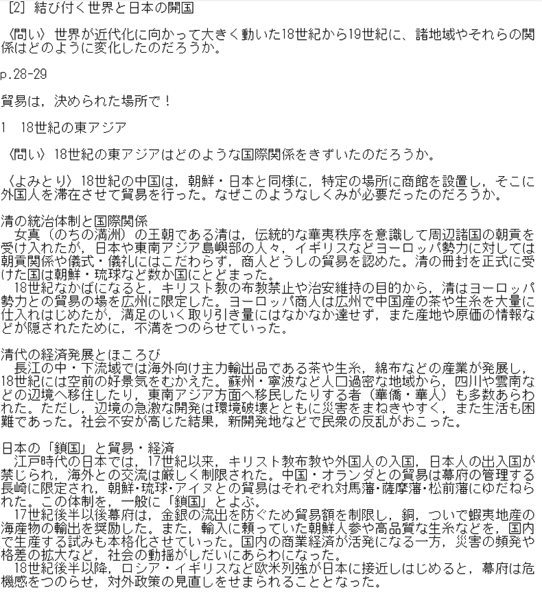 『歴史総合』では、教科書目次ページからコンテンツ一覧へのリンクのほか、該当箇所からも直接関連するコンテンツをご覧いただけます。