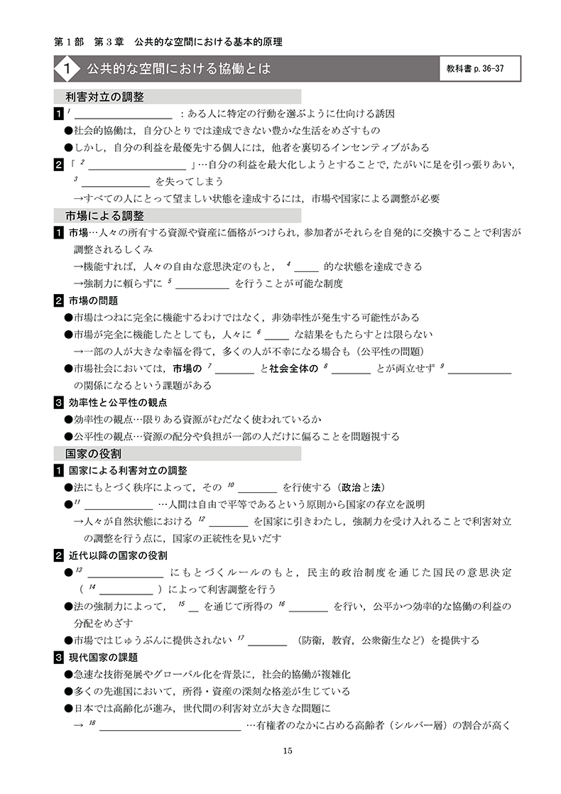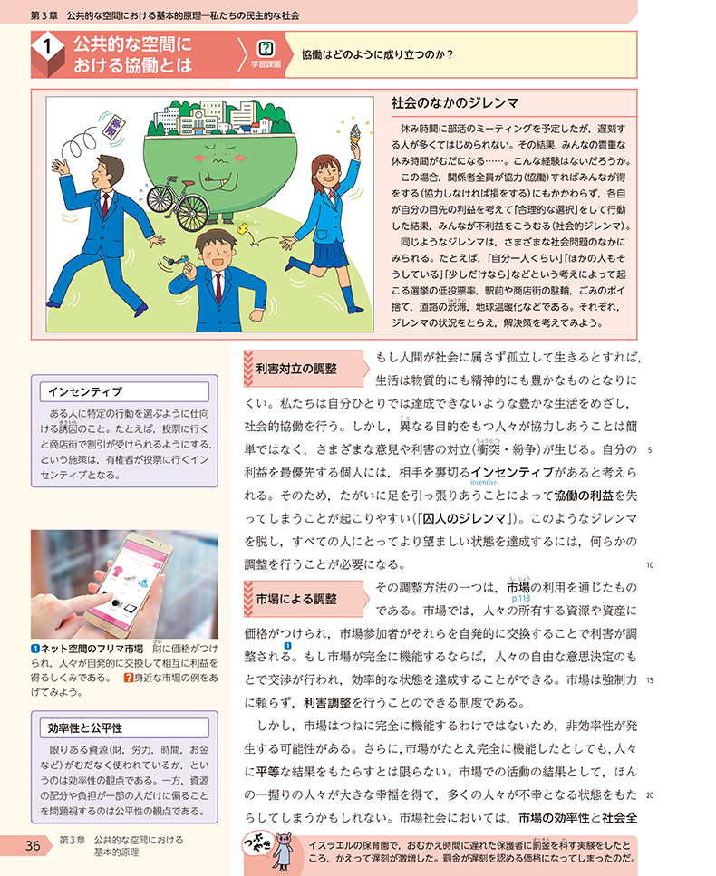 『公共』では、教科書目次ページからコンテンツ一覧をご覧いただけます。