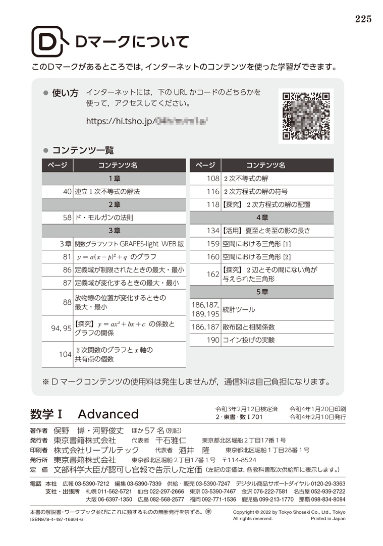 | 46021-2 | 学習者用デジタル教科書「数学I Advanced」 | 880円 |