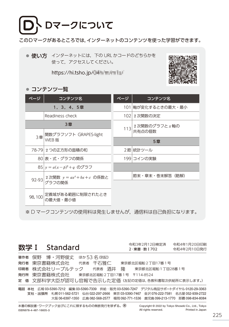 | 46022-9 | 学習者用デジタル教科書「数学I Standard」 | 880円 |