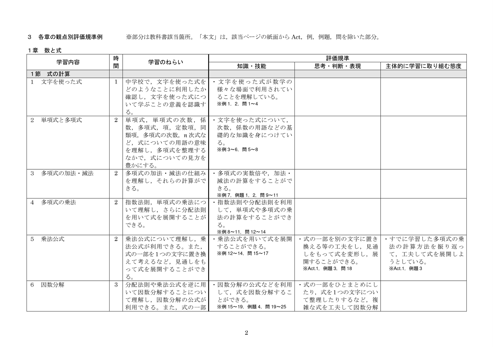 指導書 紙面サンプル 評価規準例 指導書 紙面サンプル 評価規準例