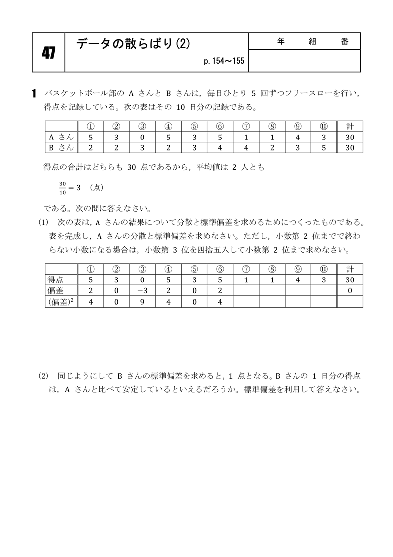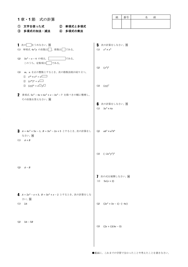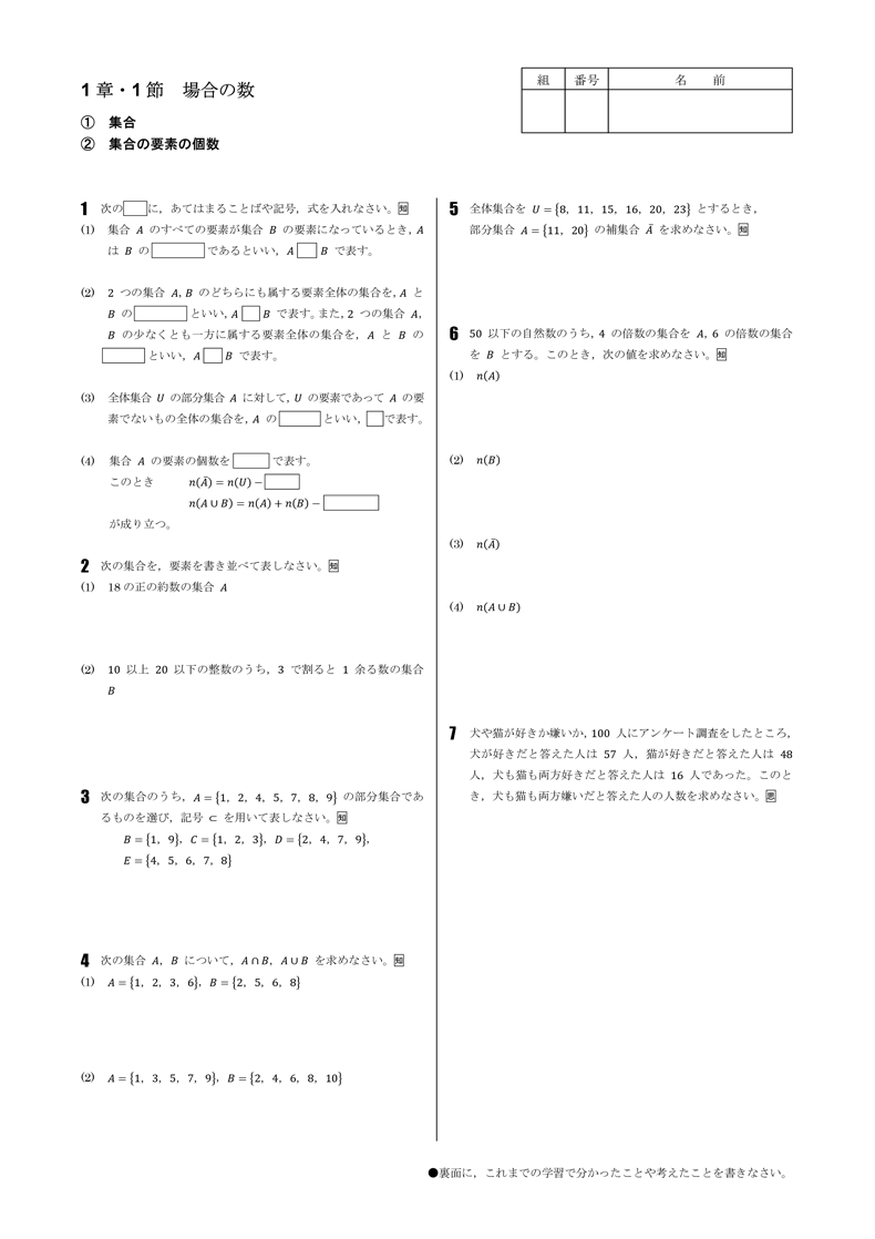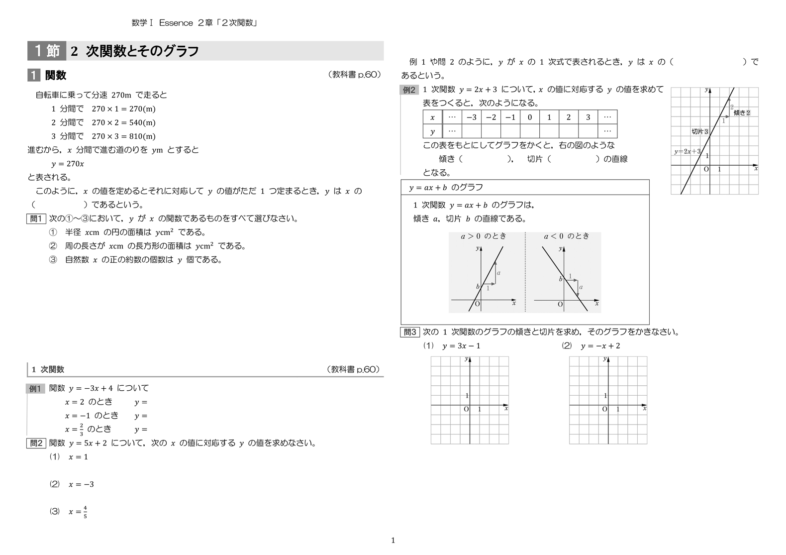 • 教科書の本文や例・例題、問、Actを、書き込み式でまとめた授業プリントです。