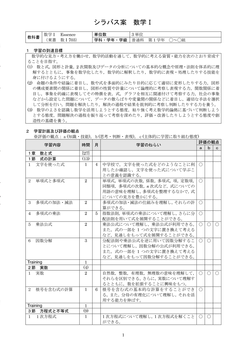 • シラバス作成時の資料として、学校の実態に合わせて加工・編集してご利用ください。