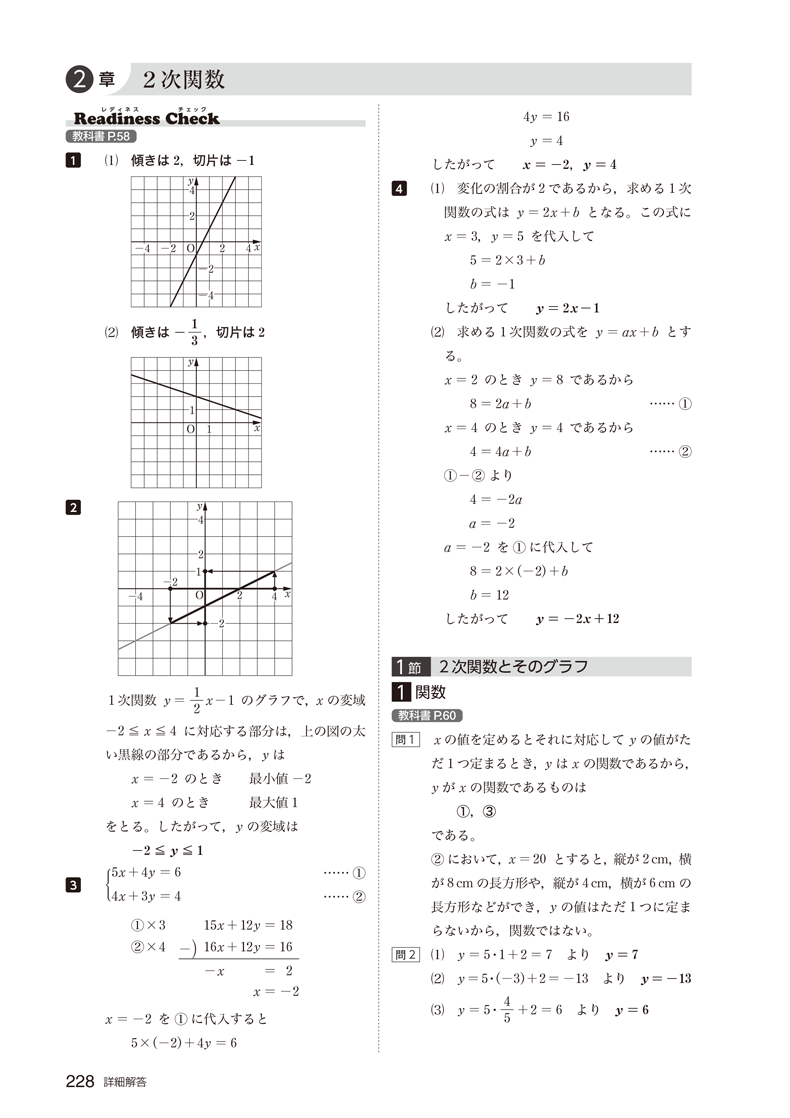 • 教科書全章全ページの本文や例・例題、問、Actをすべて収載しています。